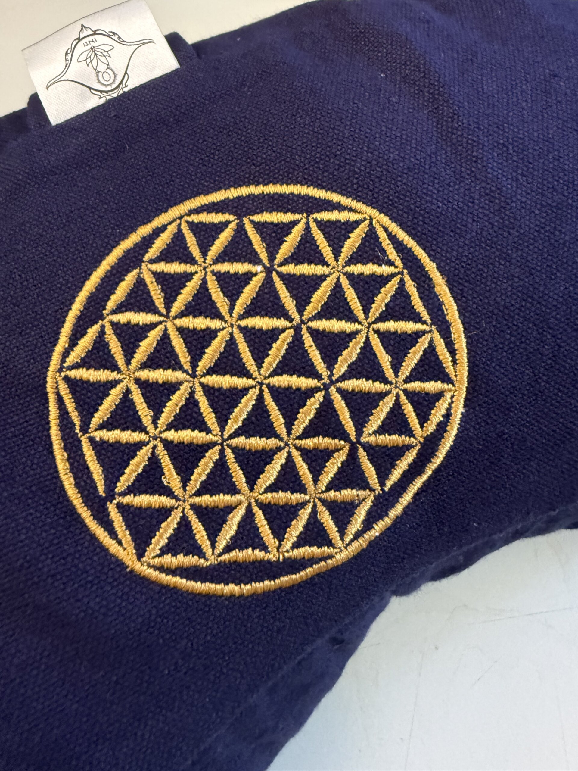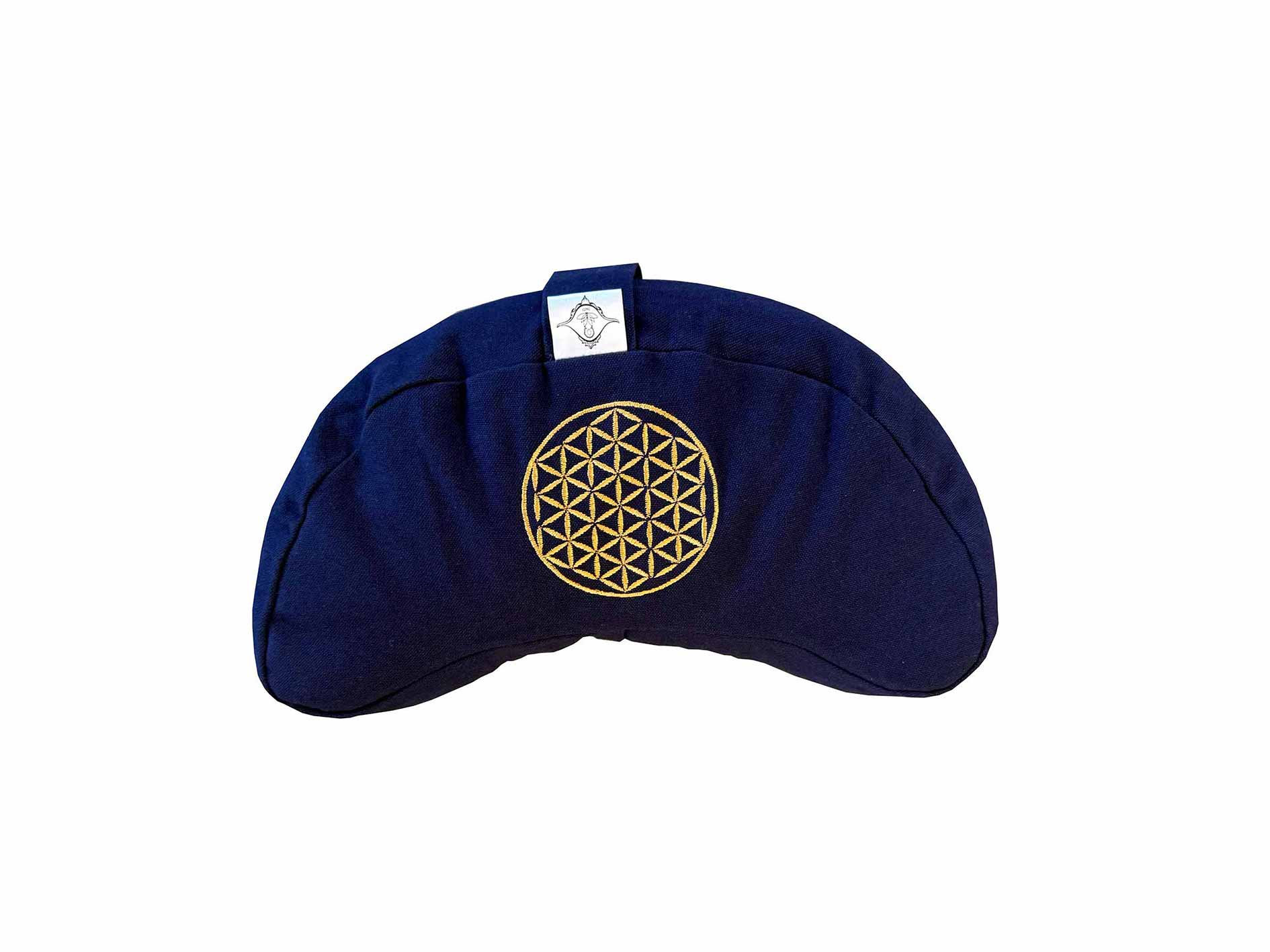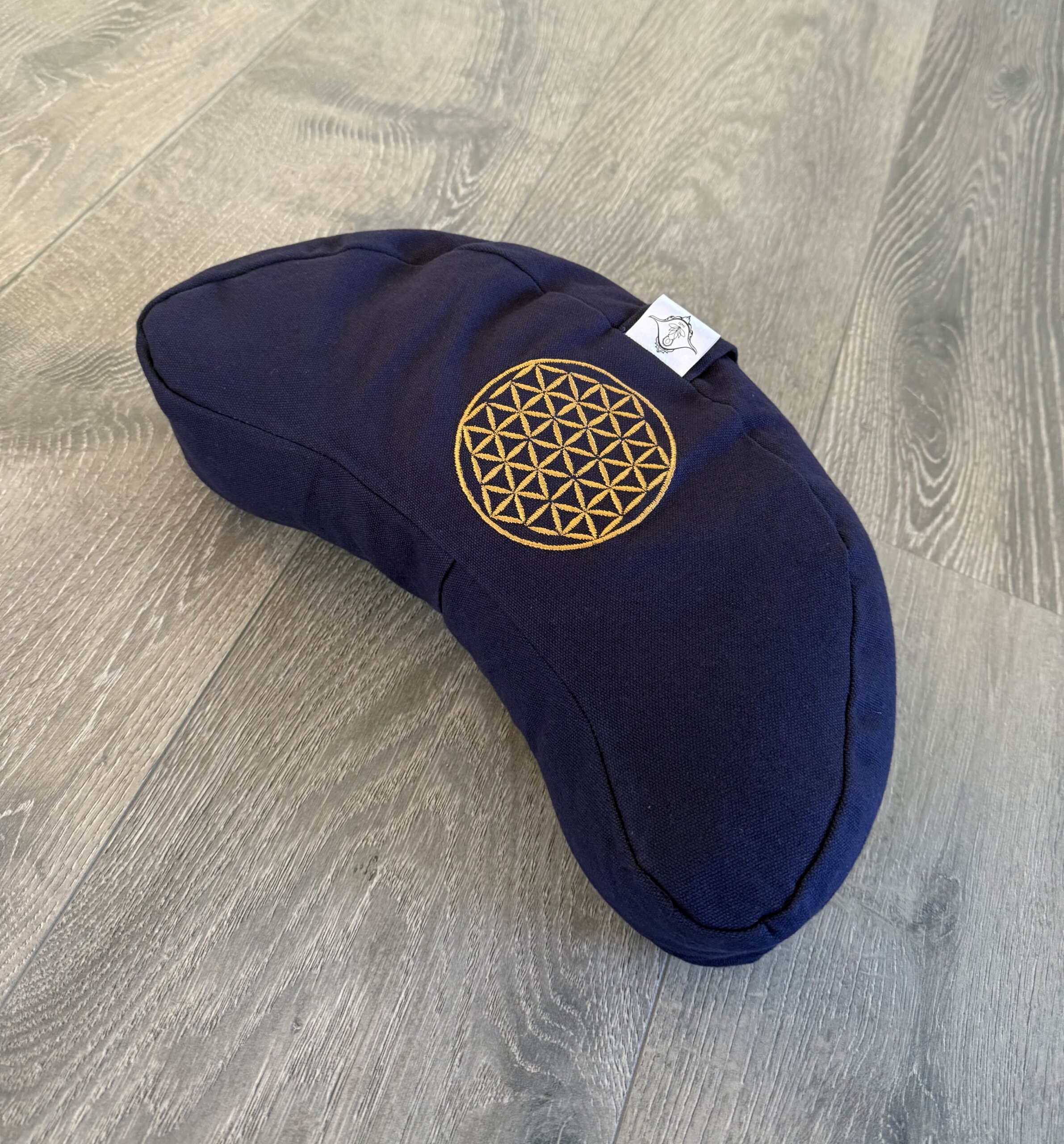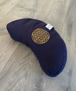Das Meditationskissen Halbmond «Flor Sagrada» ist ein praktischer und schöner Begleiter für deine Meditation und Yogapraxis. Die Halbmondform bietet dir Stabilität und Komfort. Das tiefe Blau wirkt beruhigend, und die goldene Stickerei der Blume des Lebens steht für Harmonie. Dadurch entsteht ein Kissen, das Design und Funktion zugleich verbindet.